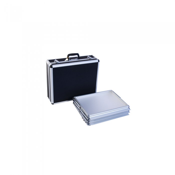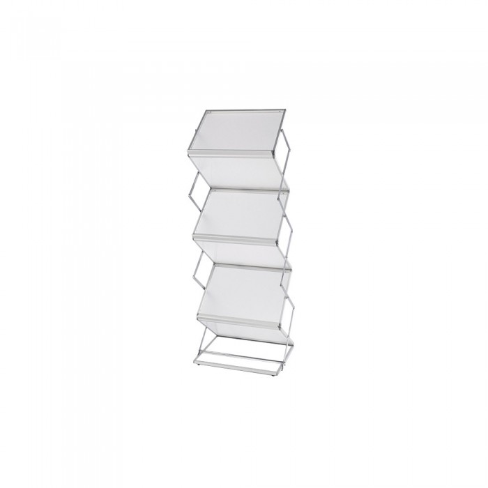 The EZ Frost features 6 shelves for displaying literature with easy set up. The frosted shelves provide a clean and professional look. Single and double widths are available, and both sizes include a hard carrying case for easy transport.